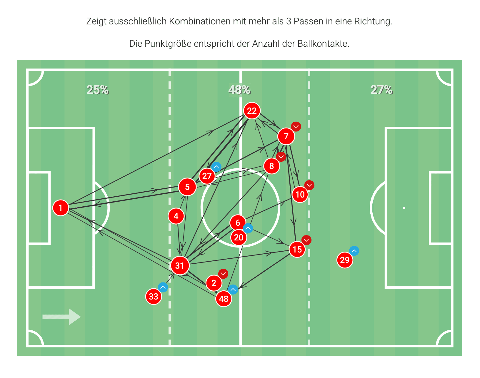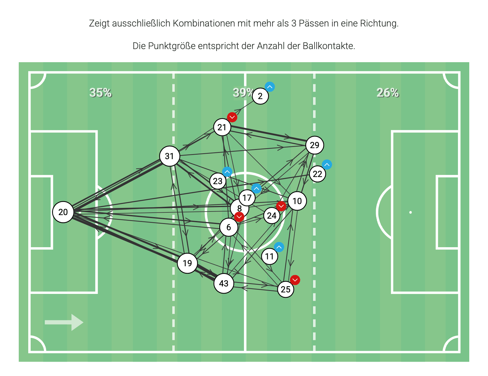 Und Skyttä? Zeigte schon, dass es spannend wird, seiner weiteren Entwicklung zuzuschauen. So beteiligt er sich beispielsweise gerne und mit Inbrunst am Angriffsspressing. Dass er Fußball spielen kann, war ebenfalls zu sehen. 80 Prozent Passpräzision sind nicht schlecht für einen Kicker, der so weit vorn im Feld unterwegs ist - und das in einem Team, das im Schnitt nur auf 73 Prozent kam. Während der Gegner 82 Prozent seiner Zuspiele an den Mann brachte.