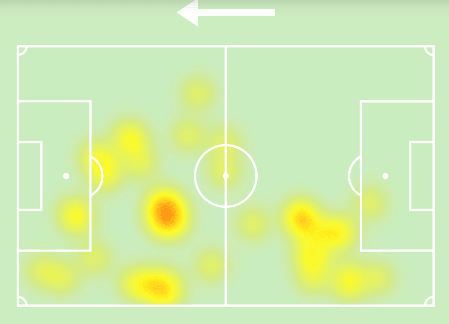 Nur: Dass sich da nun tatsächlich das erwartete 3-4-1-2 formiert hätte, lässt sich beim besten Willen nicht behaupten. Skyttä marschierte in der zweiten Hälfte fast nur noch über die rechte Seite. Und Prtajin war eigentlich nur dann Mittelstürmer, wenn's drauf ankam. Hier mal seine von "Sofascore" entnommene Heatmap:
