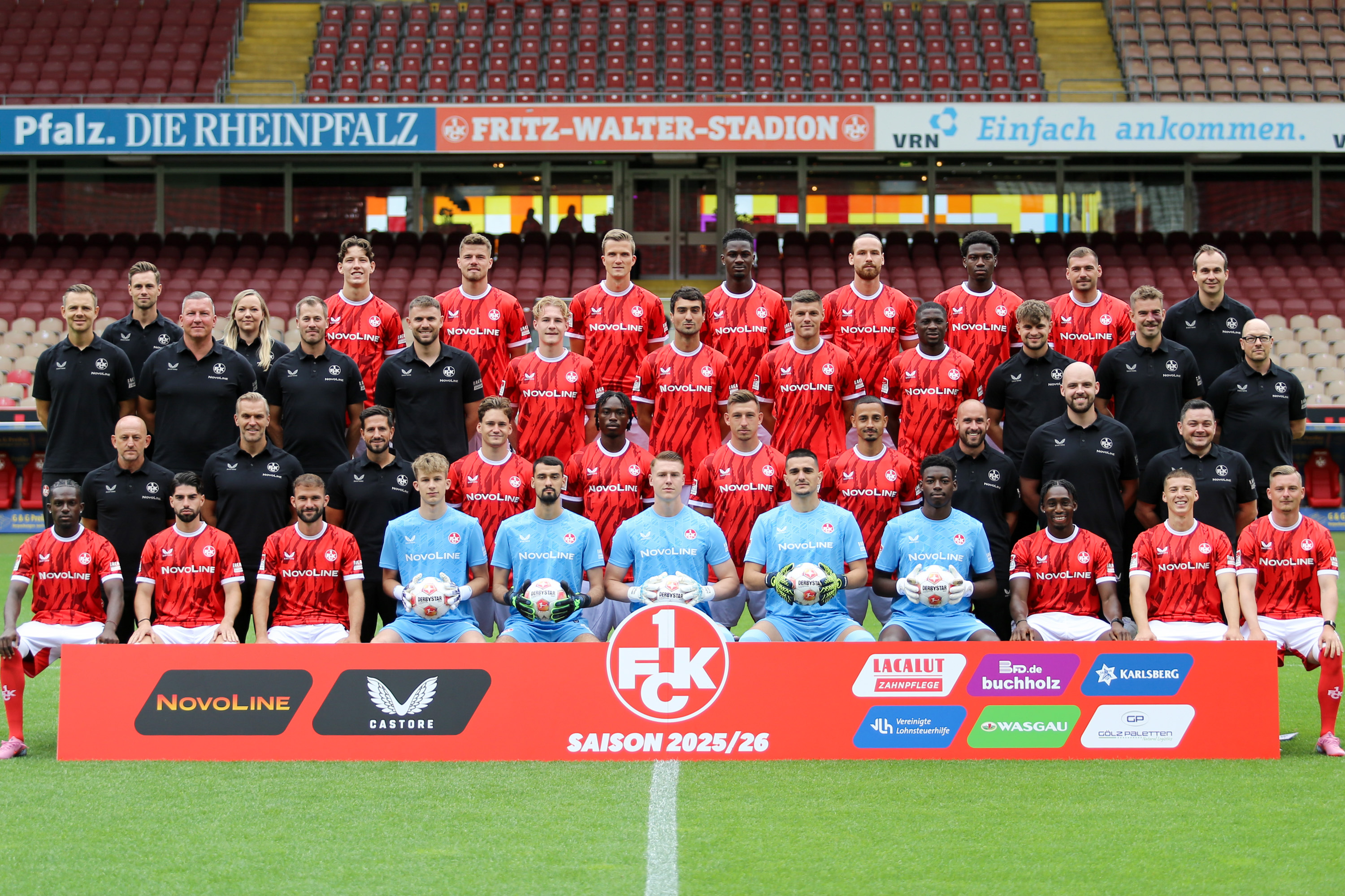 Zweite Reihe von oben (v.l.n.r.): Athletik-Trainer Lohberg, Torwart-Koordinator Rudel, Torwart-Trainer Rittmeier, Videoanalyst M. Lieberknecht, Haas, Emreli, Wekesser, Aremu, Physiotherapeut Rudy, Physiotherapeut Wekesser, Physiotherapeut Frank